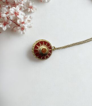 - Pendentif : magnifique pendentif sonore de 2 cm en laiton doré à l’or 18K, émaillé rouge et bleu roi, avec un motif couronne dorée