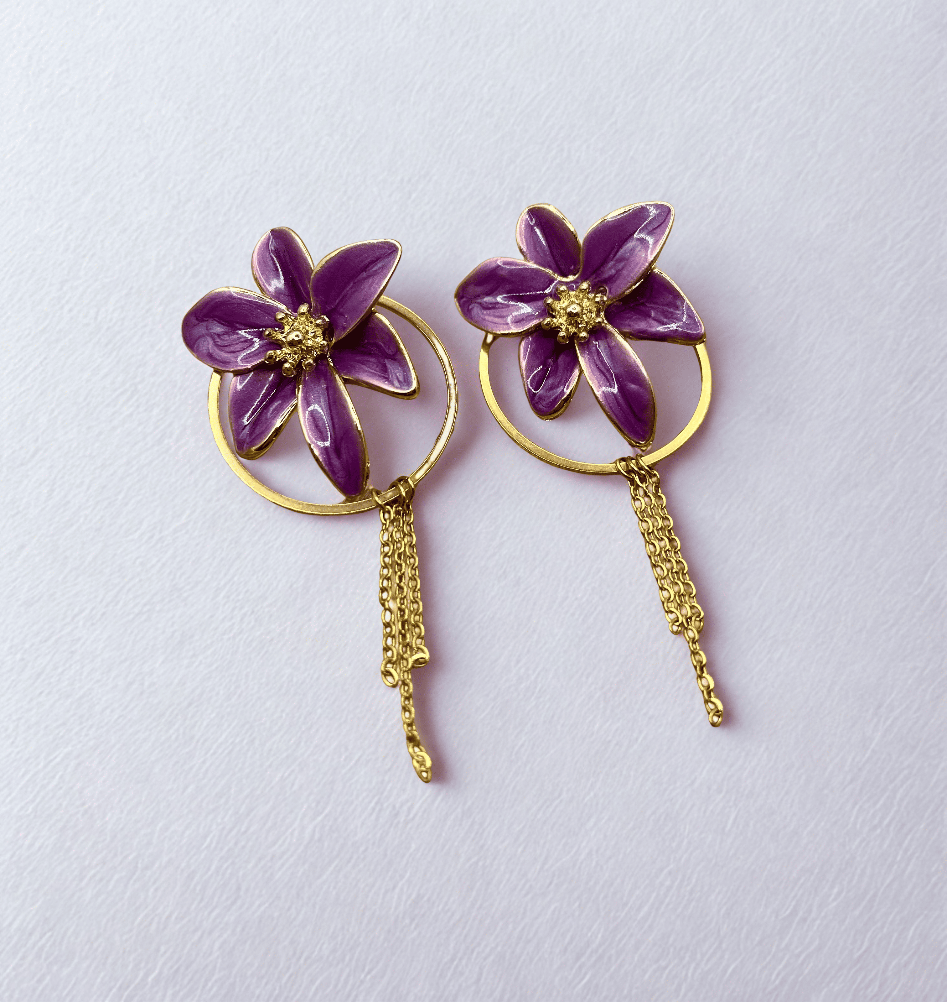 Ces boucles d’oreilles Fleur de Lys sont une pièce magnifique. La puce fleur en résine époxy est disponible dans une large palette de couleurs. Portez-la seule ou ajoutez l’anneau de 3 cm et ses chainettes pour un look sophistiqué. Un bijou 2-en-1, en acier inoxydable.